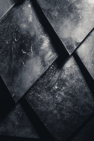 Textured dark panels interlock in a captivating design, showing artistic craftsmanship.