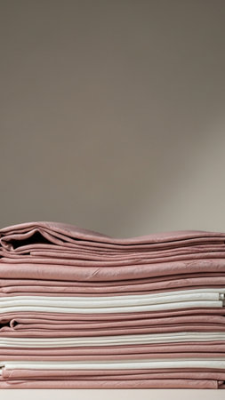 An editorial, high-definition texture shot featuring a high vertical stack of meticulously folded tr