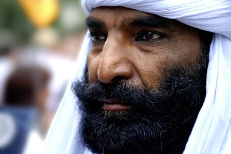 Portrait of mature arabic man with long white beard and moustache outdoor
