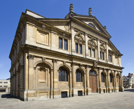 The facade of the Sheldonian Theater which is now used for music recitals, lectures, conferences, and for various ceremonies held by the University. Oxford University, Oxford, England