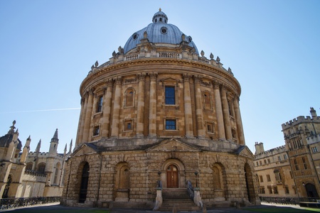 Historical building Radcliffe Camera in Oxford, England. Blue sky at background.