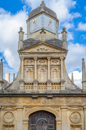 Bodleian Library Tower of the Five Orders in Oxford with the blue clear sky, London