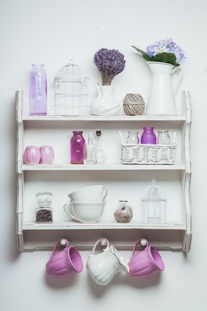 Vintage shelf in the kitchen, shabby chic style with lavender
