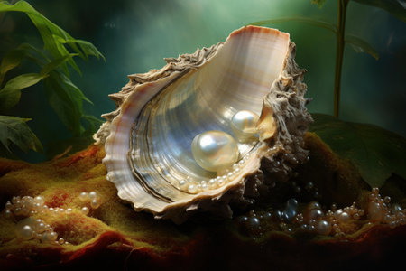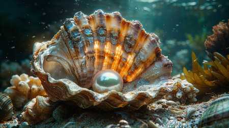 Discover the intricate beauty of an open oyster showcasing a lustrous pearl nestled inside its shell. A stunning representation of marine elegance.
