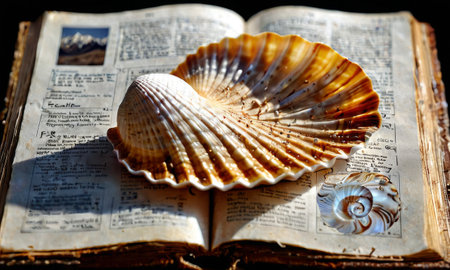 Seashell Accent on Old Pages