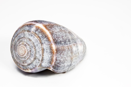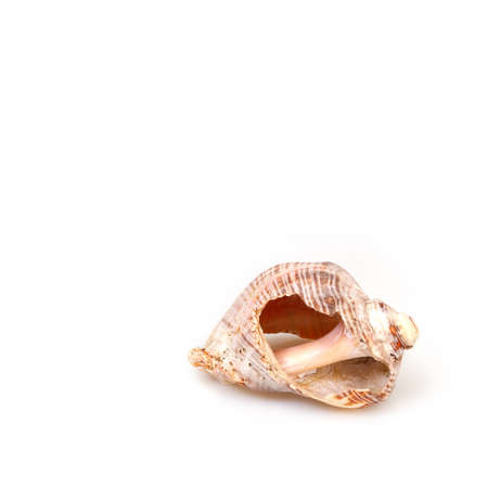 Sea shell isolated on white. Vertical image of ornament marine conch.
