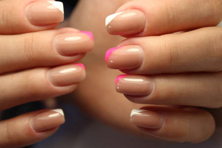 Amazing manicure and natural nails with gel polish. Attractive modern nail art design.