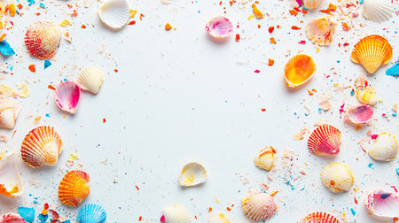 AI Generated. seashells background, summer holidays concept