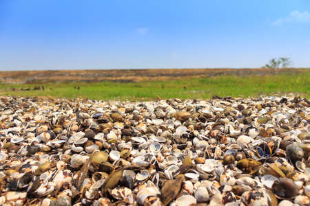 Cockleshells on coast of the big lake in a wood