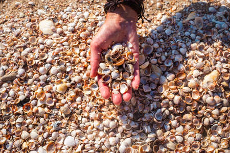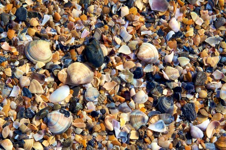 Shells and sea pebbles beach
