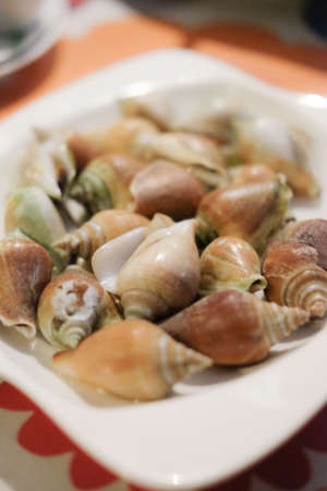 Boiled fresh Laevistrombus canarium or sea snail Thai style food