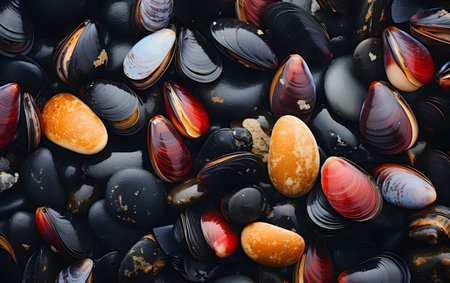 Mussels And Cockles On A Tray, Background for advertising and wallpaper in culture and food scene.