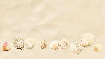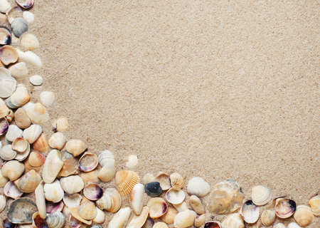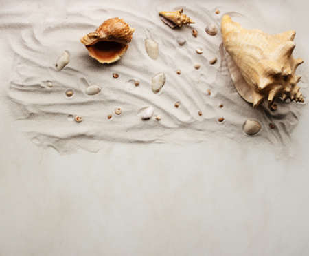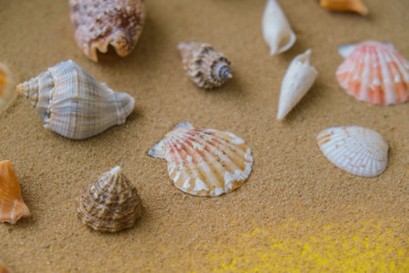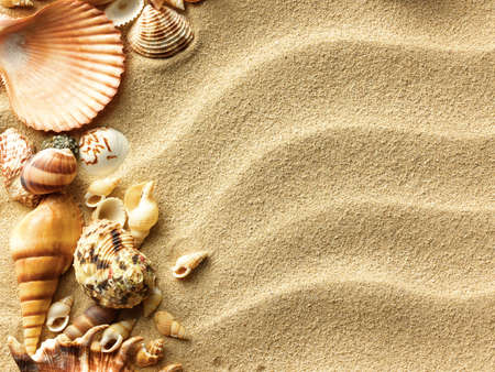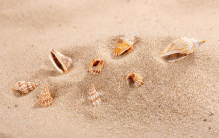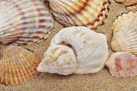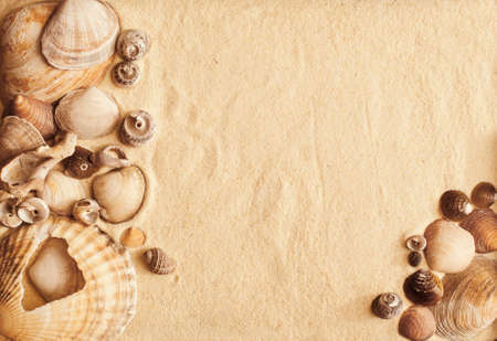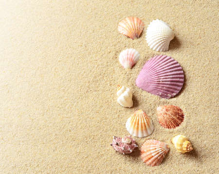 sea shells with beach sand as background