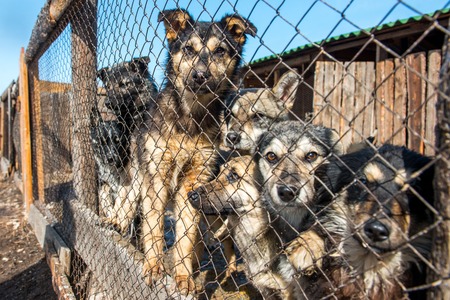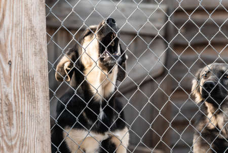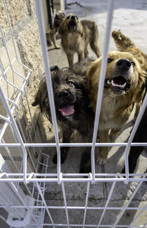 Caged and abandoned dogs, detail of street animals, animal abuse