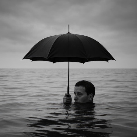 A man with an umbrella in the water as a symbol of resilience and survival