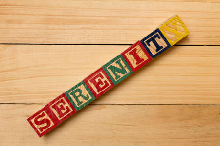 serenity wood cube words on wooden table