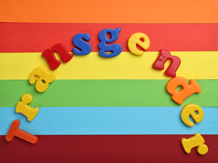 colour paper background copy text sign space purple blue green yellow red orange LGBTQ transgender plastic embossed colour font type