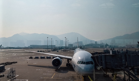 Plane arriving at gate at Hong Kong Airport