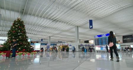 HONG KONG - DECEMBER 24, 2015: interior of Hong Kong Airport. Hong Kong International Airport is the main airport in Hong Kong. It is located on the island of Chek Lap Kok