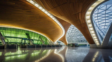 Interiors of Shenzhen international airport terminal with unique design Shenzhen Bao'an International Airport in Bao'an District, Shenzhen, Guangdong, China.