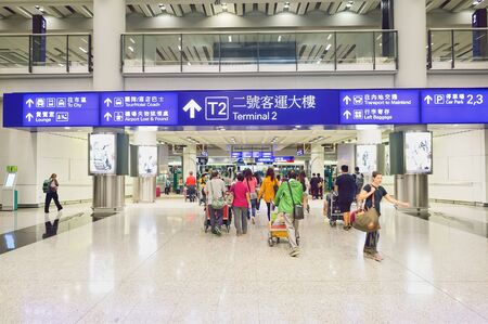HONG KONG - NOVEMBER 15, 2015: passengers in Hong Kong Airport. Hong Kong International Airport is the main airport in Hong Kong.