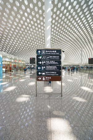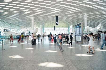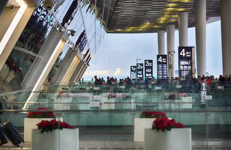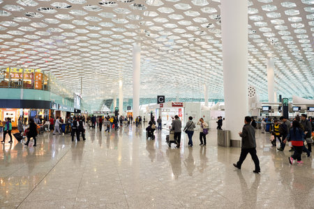 SHENZHEN, CHINA - CIRCA MAY, 2016: inside of Shenzhen Bao'an International Airport. It is located near Huangtian and Fuyong villages in Bao'an District, Shenzhen, Guangdong, China.
