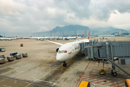 HONG KONG - NOVEMBER 16, 2015: jet flight docked in Hong Kong Airport. Hong Kong International Airport is the main airport in Hong Kong. It is located on the island of Chek Lap Kok