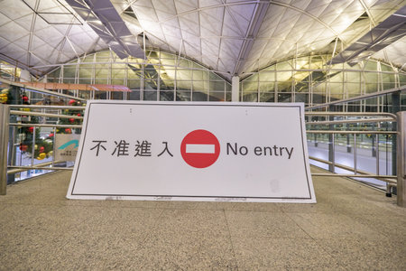 HONG KONG - CIRCA DECEMBER, 2019: no entry sign as seen at Hong Kong International Airport Terminal 1.