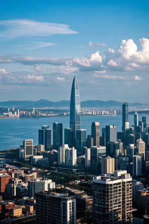 Aerial view of skyscrapers and highway in Shenzhen, China