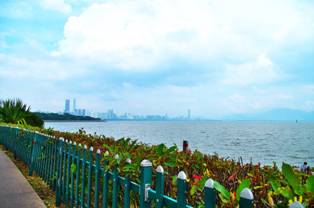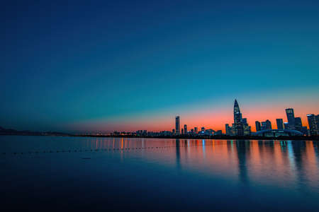 Skyline of downtown of Shenzhen city, China. Viewed from Hong Kong border