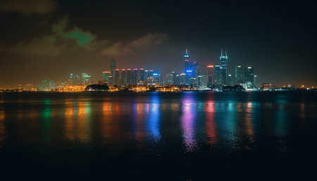 Hong Kong cityscape at night, China. View from Victoria Peak, Seoul Skyline, AI Generated