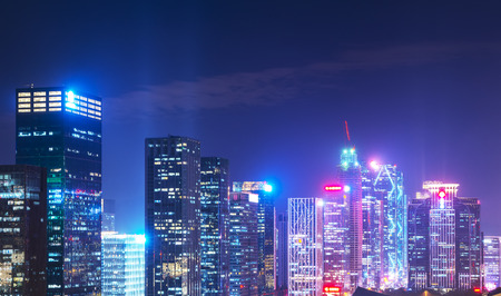 Night view of skyscrapers in Shenzhen city, China.