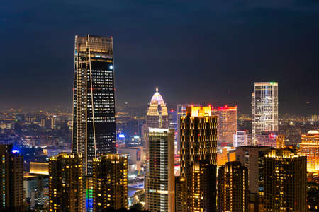 Night view of urban buildings in Nanning, Guangxi, China from high altitude