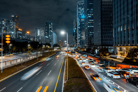 Cityscape of cars motion blur in Guangzhou China