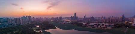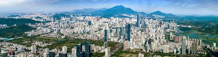 A bird's eye view of the architectural landscape of Shenzhen and the skyline of the city