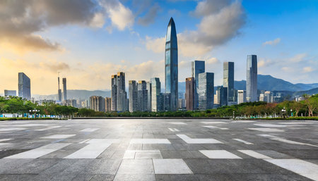 city square and skyline with modern buildings in shenzhen guangdong province china