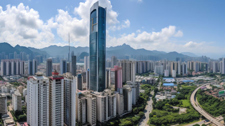 Generative AI Aerial view of landscape in Shenzhen city,China