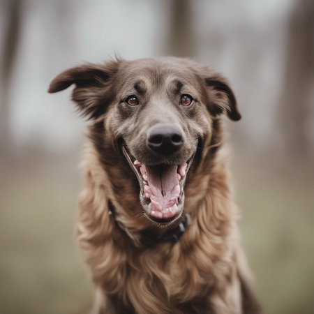 portrait of happy dog with tongue hanging out, eyes shining with happiness, created with generative ai