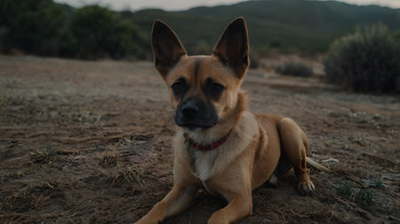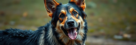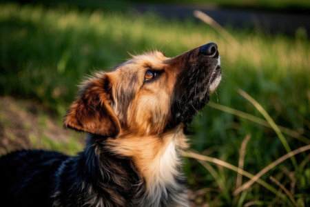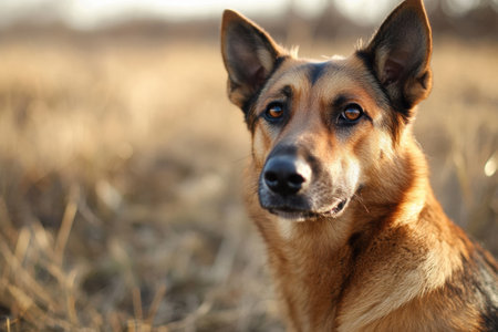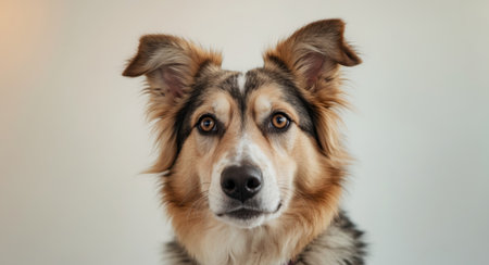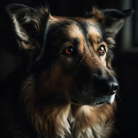 AI Generated. Curious Shepherd Mix Gazing with Alert Ears and Intelligent Eyes