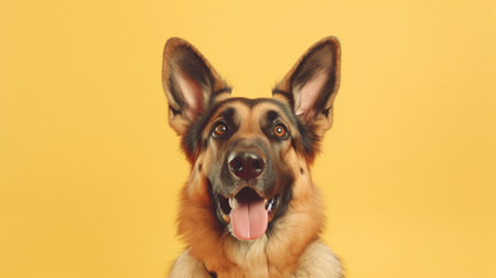 German shepherd dog portrait on yellow background in studio. Concept of friendly family.
