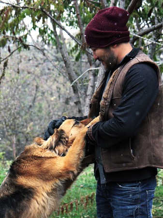 Beautiful service german shepherd next to the owner. high quality photo