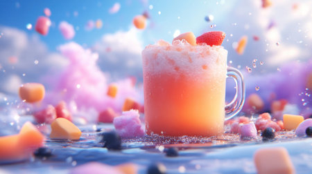 A vibrant image of a refreshing drink adorned with fruits and whipped cream, perfect for summer.