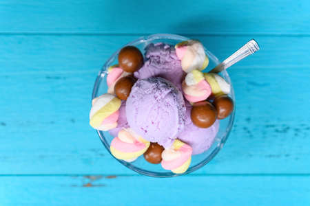 Ice cream colourful summer treat, sweet dessert in summertime, holiday food idea
