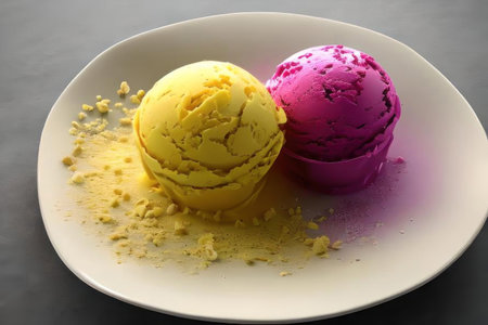 Two scoops of ice cream. AI generative. illustration in photorealistic style.