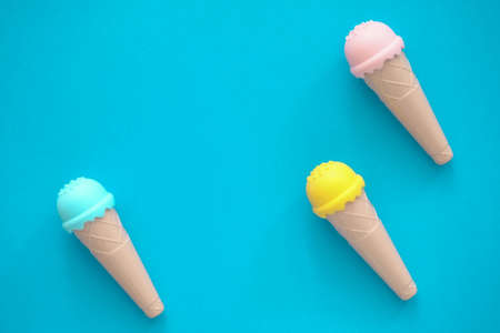 toy ice cream of different colors on a colored background