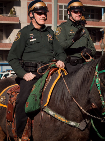 The 2012 National Western Stock Show Parade, travels up 17 Street in downtown Denver, Colorado.