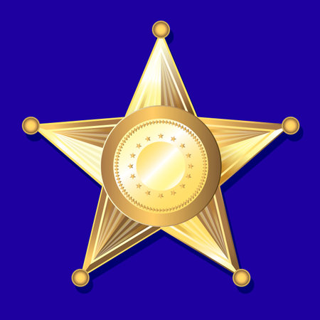 vector illustration. Gold five-pointed star. Sheriff, police sign.