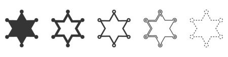 Sheriff star vector icons. Set of star symbols on white background. Vector illustration. Various black Sheriff stars