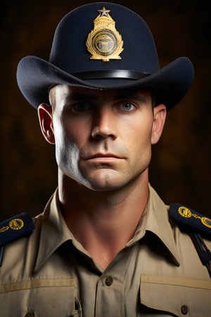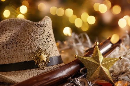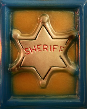 Bright silver sheriff star on the hat