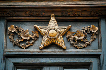 sheriff star on wood table closeup